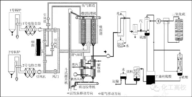 活性焦煙氣脫硫技術工藝流程示意